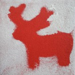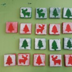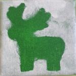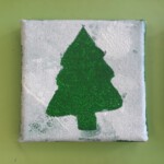 Kleine Weihnachtsgeschenke auf Keilrahmen mit Acrylfarbe und Schwämmchen. Gestaltet von der Klasse 1c3.