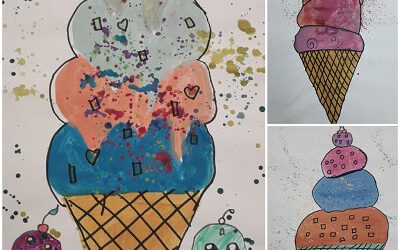 An dieser Stelle möchten wir Ihnen die Bilder des Monats vom Juli 2022 präsentieren: Eis - frei mit Wasserfarben gestaltet von der Klasse 1c3....